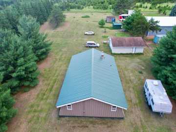 Prime location here for your up north retreat or country living! Located a mile from High Falls Flowage and very close to restaurants, bars and on the ATV trail you're able to venture as you please from this quaint property. On the property you'll find ample storage with the 24x30 heated/insulated garage. With a large woodstove and Lp heat it will keep your toys dry year around. The Main Building (32x48/1536 sq ft.) is awaiting your finishing touches features an open concept upstairs with a newer metal roof and a full poured foundation. A drilled 6” case well and a 3-bedroom septic round out this gated private property. Bring your ideas and come make great property yours today!