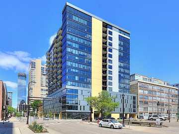Stunning 2BD, 2BA south-facing condo unit on the 10th floor in the Portland Tower condo building. **The HOA fee covers all utilities except electricity.** Enjoy direct natural light during the day, and shimmering city views at night. Plenty of space for easy living or entertaining. Sophisticated maple floors/millwork, granite counters, a center island, and dedicated dining nook offers flexibility for any occasion. Spacious primary suite which boasts a generous walk-through closet (outfitted with custom organizers), and an ensuite with premium tile finishes, double sinks, and a large shower. Some additional features include solar screen shades, off-street guest parking, an indoor pet relief area, and a natural gas hookup on the balcony (for grilling). Modern elegance exudes throughout this 2016-built building, including a swanky community room, a nicely-equipped fitness room, and a 6th-floor terrace featuring firepits, grilling station, and a community garden. Located perfectly in the center of downtown Mpls, it is an easy walk to every attraction (US Bank Stadium, Target Center, Target Field, restaurants, groceries, parks, the Mississippi River parkway, etc). Enjoy!