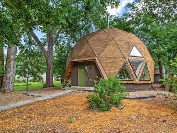 Rare opportunity to own this spectacular and unique Geodesic Dome Home! Step inside to the open, spacious living and dining rooms filled with light from the wall of triangular windows. The dining room flows through to the kichen, which was completely renovated in 2019. From the kitchen you can access the backyard concrete patio and oversize two car garage. The primary bedroom on the main level easily fits a king size bed and has lots of closet space. Up the spiral staircase you'll find two more fabulous yet functional living spaces, as well as a third bedroom and laundry area. The third floor loft is accessible via a pull down ladder and has so many possibilities - art studio, yoga and meditation space? The Dome Home is situated on a cul-de-sac street with a community garden at one end and Shingle Creek running along the other. Walking and biking paths start just outside the property, leading along Shingle Creek to the park and then connecting to the Grand Rounds Scenic Byway. Domes with this design are known for their strength and energy efficiency, come check it out!