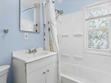 Inside, you’ll find beautiful original details including oversized woodwork, hardwood floors throughout most spaces, tall ceilings, and a stunning stained-glass window in the living room. The kitchen offers durable vinyl flooring, while the bathroom is finished with classic tile. Three bedrooms are upstairs, including an owner’s suite with walk-in closet and full bath. Major updates include a new furnace (2022) and water heater (2024) for peace of mind.