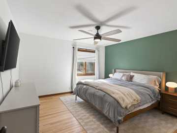 The primary suite offers a walk-in closet and private bath with dual sinks, and multiple custom closet systems provide exceptional storage. The walkout lower-level features brand-new LVP flooring and a dog door leading to the fenced backyard. Outside, enjoy .38 acres with a spacious deck, patio, and room to entertain or unwind. The extra-large 2.5-stall garage includes loft storage and EV charging capability. With a new roof in 2024, brand-new furnace, and smart garage door opener, lock, and thermostat, this home combines style, comfort, and convenience. Tucked on a very quiet street with no through traffic and a peaceful setting across from trees and a retirement community, it offers an added sense of privacy while remaining close to all the best amenities of the western suburbs.