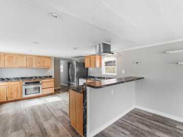 Affordable and updated mobile home with modern finishes and spacious layout! This home features a bright open-concept living room and kitchen with updated flooring, fresh paint, and plenty of natural light throughout. The kitchen offers ample cabinet space, stainless steel appliances, and a functional breakfast bar perfect for everyday living or entertaining.